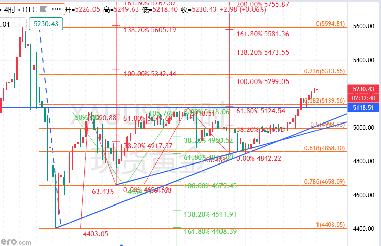 上方目标位5240区域抵达后,这里早间短期阻力;向上突破前谨慎,向上突破5240-50后则关注冲击5300美元及5350-60美元目标位。其中5350-60这里相当关键,进一步5440-50美元区域,一样非常关键;如果触及,很大可能成为冲高回落的位置。