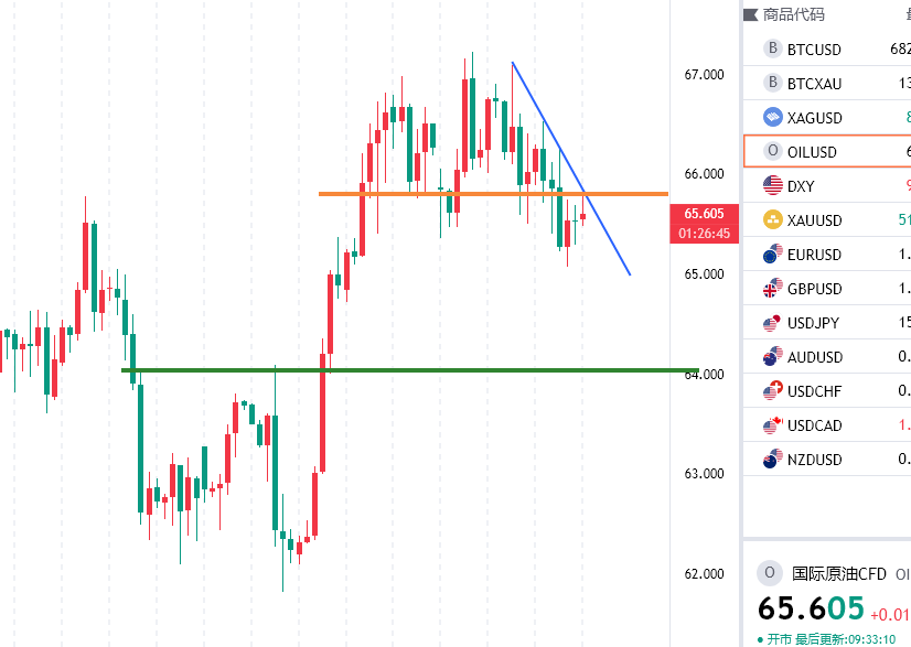 原油反弹66.4附近空,防守67.2,目标看65/54一线