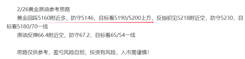 美伊谈判在即,关税政策也是多变,导致黄金近两天维持反复的震荡整理走势,我们也是跟大家分享多空一起布局的机会,日内跟大家分享的5160附近多,目前回踩最低5157一线给到进场机会反抽到了5187一线,兑现25美金左右的空间,大家注意及时保护利润,目前压力位逐步下移,晚间做空的位置我们考虑下移到5200附近,接多的位置要等5120附近再考虑,原油的话如期回落到了64一线,67上方空单超过30美金空间,时间换空间得到了兑现,晚间就关注64破位后的延续情况,另外重点关注美伊谈判后续情况了。