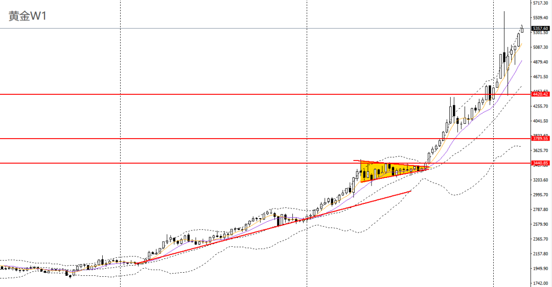 黄金上周收长阳柱,仍立于5周均线之上,RSI到达超买区,波段预计继续上探前高。日线呈前进三兵,日线RSI上扬,4小时站上5300关口阻力,如维稳于上方可延续多头思路,上方首先关注5400附近压力。黄金/人民币如回踩1178附近企稳可进多。