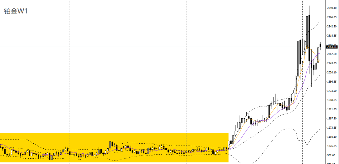 铂金上周强势拉涨,站上5周、10周均线,波段整体趋势仍偏强。周五持续走高,今日亚盘刺破前高,逼近关键平台阻力2460,多单仍可持有,如无法站上2460,多单可离场。