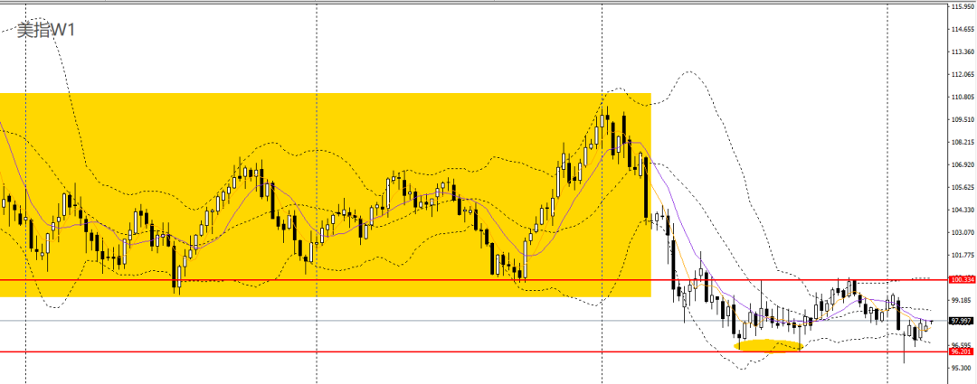 美元指数上周微幅反弹,上探10周均线,波段多头力量仍有限。周五收小阴线,今日亚盘受美伊局势影响,美指跳空上行10余点,4小时再度上探98关口,如无法有效升破,短线预计将延续高位震荡。