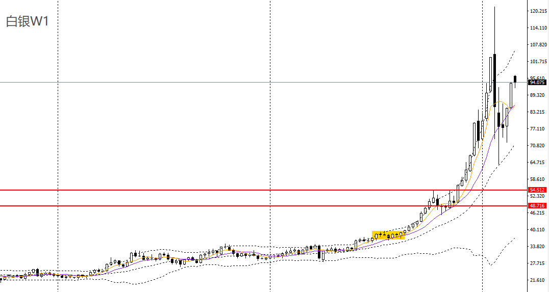白银上周延续上行,RSI位于高位,波段大概率将延续震荡上行。日线呈多方炮,触及日线布林上轨,4小时上破关键阻力96.50,多单仍可持有,如升破前高,可看多至98。