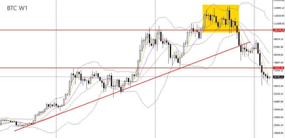 比特币上周收十字阴线,受5周均线压制,波段趋势仍疲软。昨日小幅收跌,5日、10日均线仍走平,4小时仍于65000-70000区间内徘徊,可保持观望。