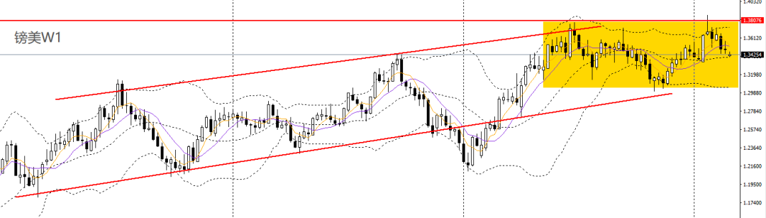 欧美上周收十字阳线,RSI回落,波段重归高位震荡格局。周五收小阳线,徘徊于5日均线附近,日线RSI仍位于50左右,4小时仍于1.1760-1.1830区间内震荡,可保持观望。