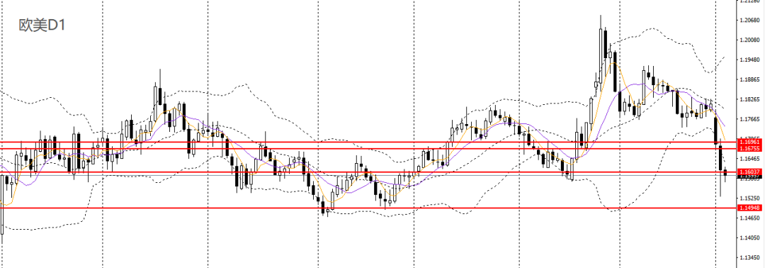 欧美周二探底回升,彻底下破日线布林下轨,日线RSI行至低位,4小时下破1.16关口支撑,短线走势仍疲软,空单可继续持有,下方首先关注1.1530一线支撑,如再度企稳,空单可离场。