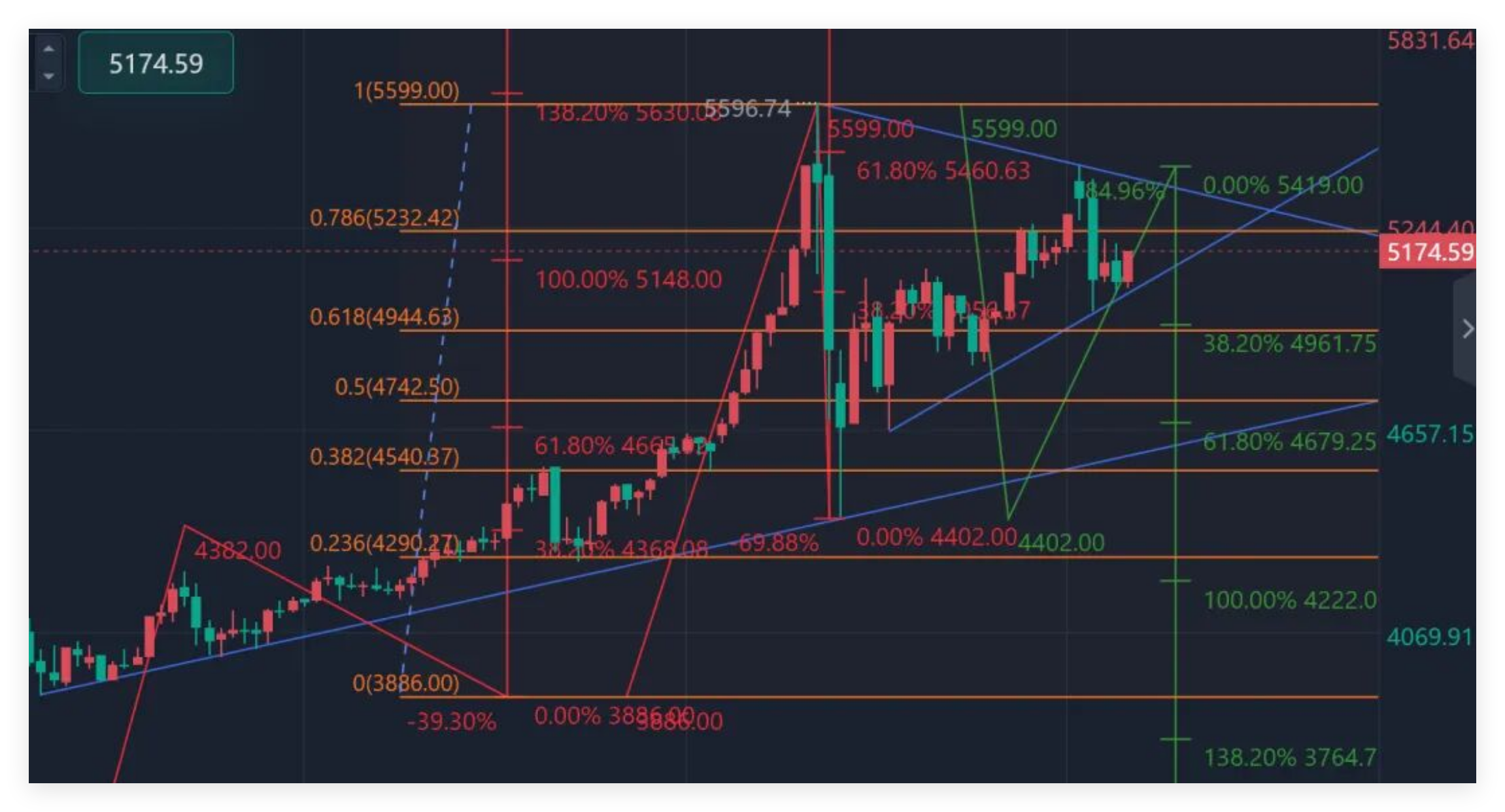 一切反弹不上5200都是为了下跌;上去5200美元则多头走强!扫荡式下跌为主,操作上,杠杆产品拉高做空为主,不追空,靠近支撑可多单辅助。非杠杆产品积存金等,已经5400美元高位提示减仓,等低吸买回来,5000美元以上能不买就不买;依然部分仓位持有,部分打差价。实物没啥可说,别折腾。