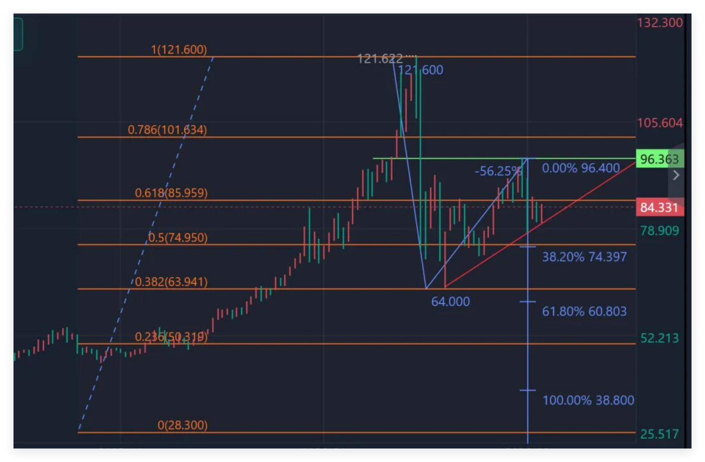 短期的话关注冲高回落,第一84-85美元区域阻力,然后87-86美元阻力;一切拉高不上87都要跌,上了可能会冲击90及以上再跌。下方支撑80美元和77美元;破位支撑还要泄洪,进一步75-74美元,70-71美元,破位前多头反。操作上,同步黄金,带好止损。