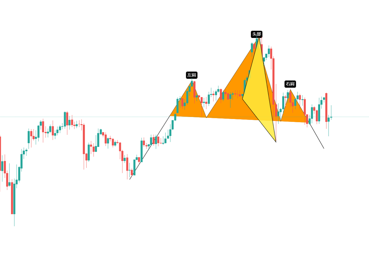 这个图形很经典,头肩顶,一般来说这个形态出现之后,行情要看跌,这不是说黄金如此,而是只要带有K线的品种,都能有这种交易逻辑。