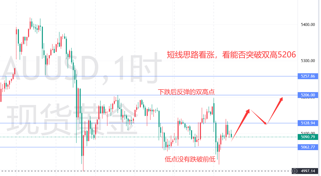 从之后的走势看,上周五欧盘盘中,黄金持续回落,最低跌至5062美元,直到美盘开盘后,黄金企稳反弹,涨至5171美元遇阻,临近收盘时继续向上试探,至5174美元遇阻;本周一开盘,黄金短线冲高5197美元遇阻后,走势震荡回落,最低跌至5014美元,企稳后反弹5140美元遇阻,目前交投于5108美元附近。总体来看,黄金反弹相对乏力,走势保持承压震荡,基本处于我们给出的5200到5000美元区间运行。