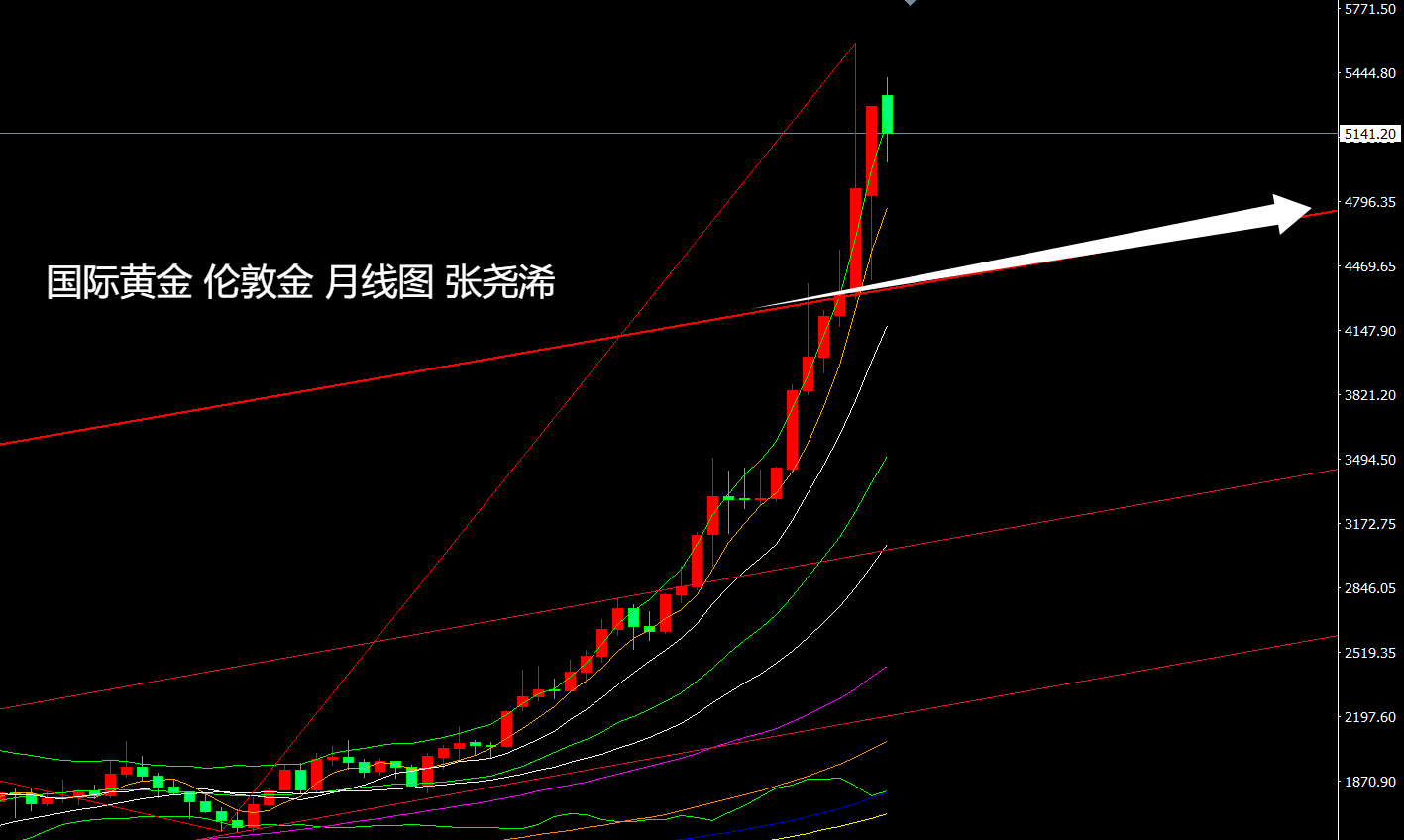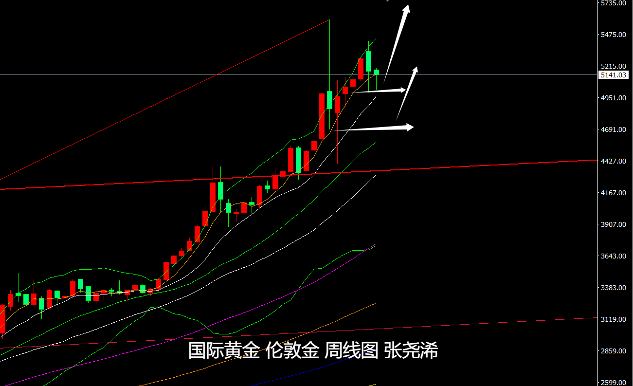 反之如跌破趋势线支撑收线4300关口,则暗示牛市结束,将进一步跌至3500美元乃至更低位置3000关口。