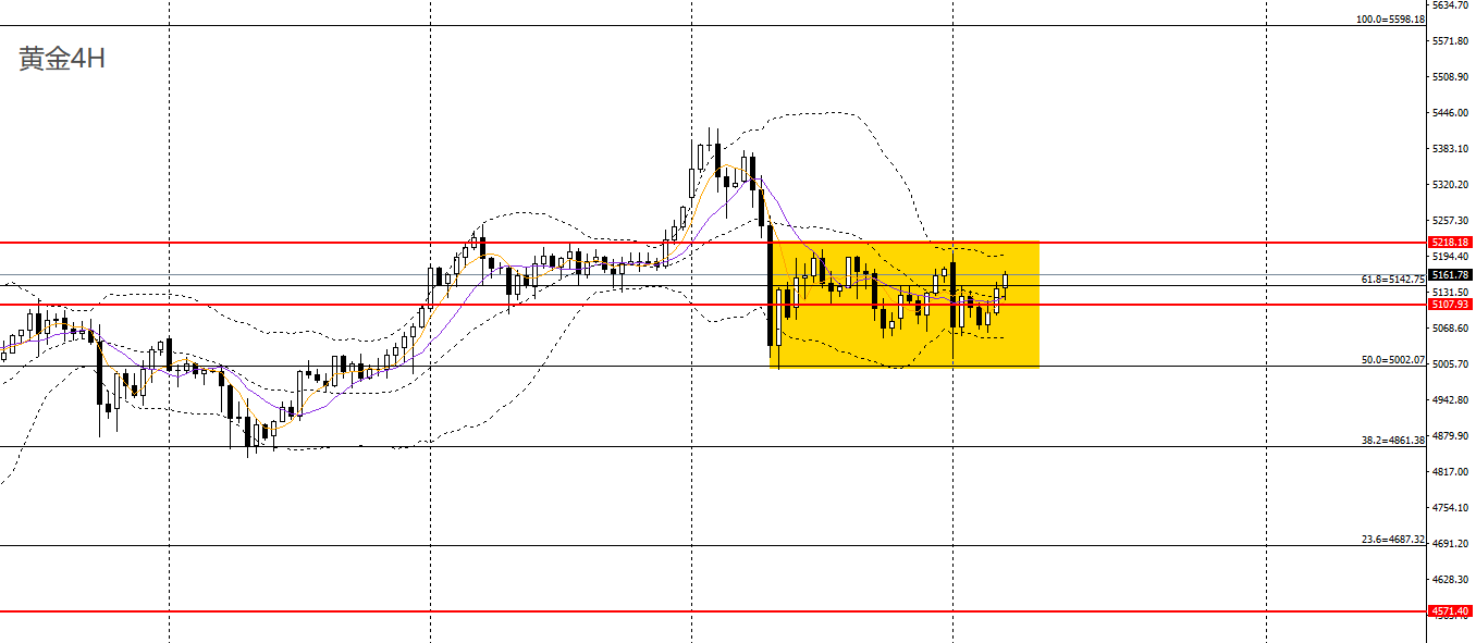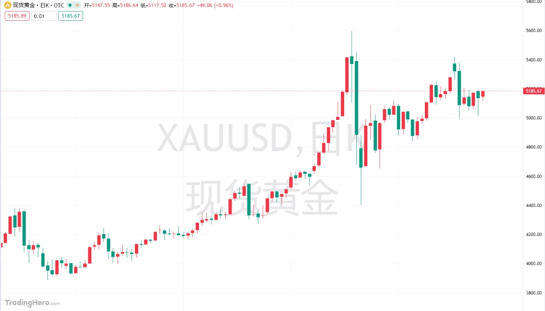 黄金价格收复了周一早些时候的部分失地。技术面显示黄金整体偏向上行,但未能突破关键阻力区域5200美元/盎司,目前在5000美元/盎司至5194美元/盎司区间震荡。相对强弱指数(RSI)显示买方动能减弱,该指数正向中性水平靠拢,未能突破近期高点。