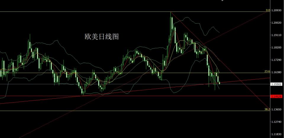 欧美市场昨日开盘在1.16089的位置后行情先拉升,日线最高触及到了1.16450的位置后行情承压回落,日线最低给到了1.15596等位置后整理,日线最终收线在了1.15659的位置后,日线以一根上影线很长的大阴线收线,而这样的形态收尾后,今日的行情先回落1.15150多止损1.15000,目标看1.15400和1.15600和1.15800