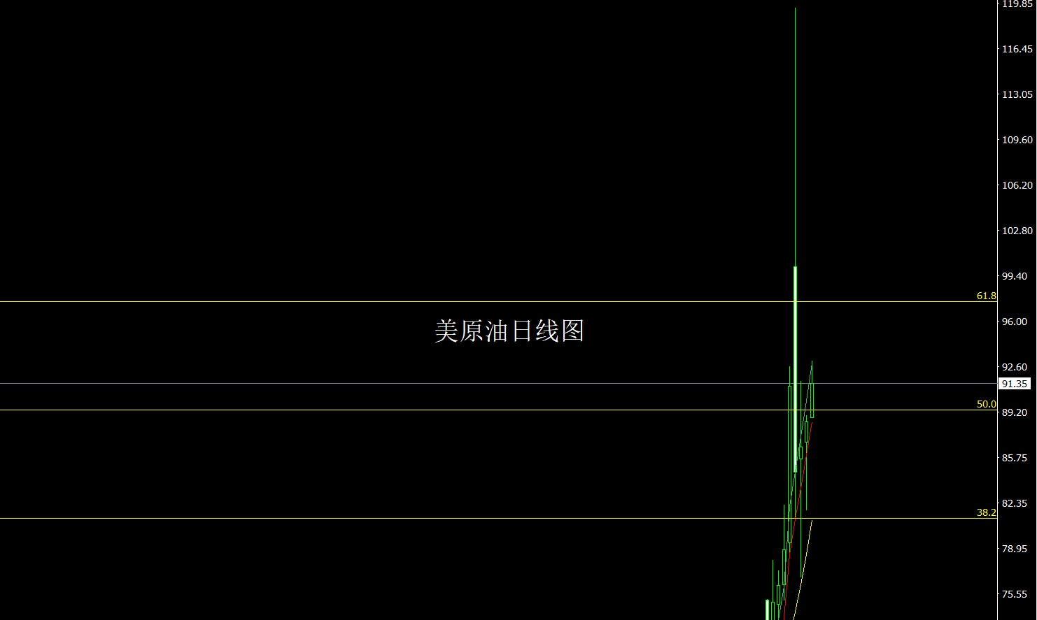 美原油市场昨日延续拉升,早盘高开在86.95的位置后行情先回落,日线最低给到了81.7的位置后行情区间拉升,日线最高触及到了88.99的位置后整理,日线最终收线在了88.4的位置后,日线以一根下影线极长的锤头形态收线,而这样的形态收尾后,今日87多止损86.5,目标看90和91和93和95和98-100.