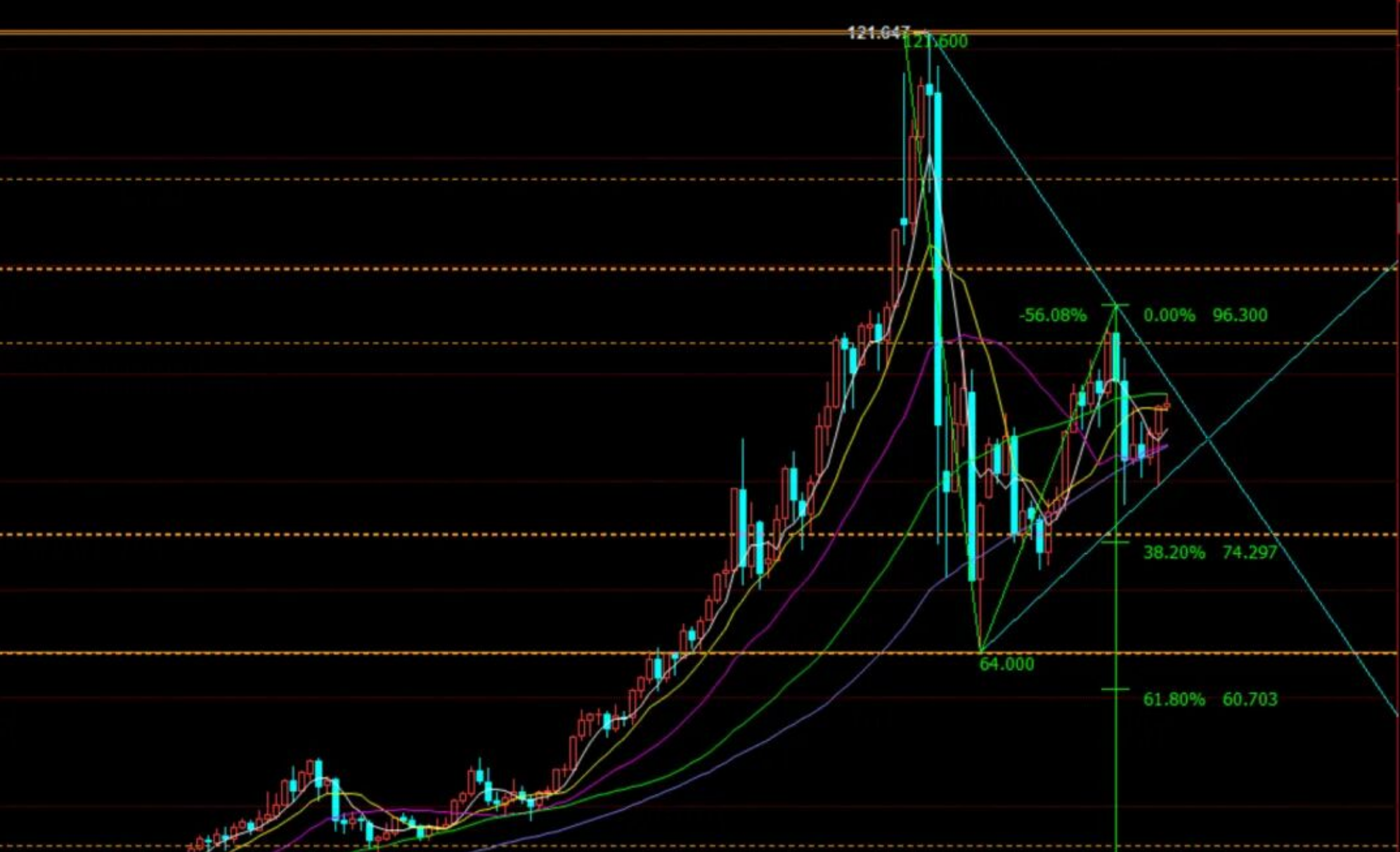 美原油方面,原油疯起来,金银无法匹敌。周一可是涨30%,跌30%以上,涨30美元,跌40美元。大起大落后,接下来进入修正阶段。