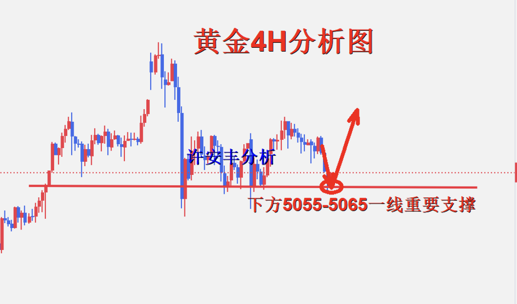 黄金日线整体还是继续震荡上行,黄金牛市结构还在,短期的回落只是属于正常的回调,调整很正常,行情不可能一直涨,也不可能一直跌,黄金4小时当下还是在大区间震荡的范围内运行,黄金短期回落5055附近支撑依然是关键,当下黄金还没有形成结构破坏,那么就继续在大区间范围内操作,等待行情出现突破,当前黄金4小时已经震荡很长时间了,随时可能面临结束调整。开启新一波的行情,黄金还能创历史新高吗?我们拭目以待!如果你目前操作不理想,希望许安丰能让你的投资少走弯路,欢迎前来沟通交流!