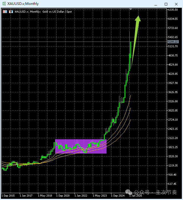 本文每周初更新发布梳理各级别走势分析和预期主次节奏:做有品质的三方服务黄金月线图(超长线)