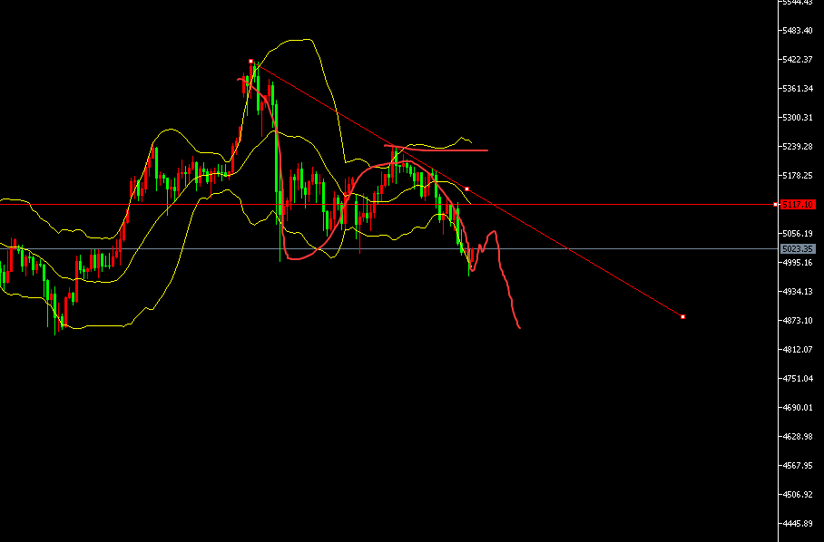 如果短期强弱分界线意外上破,那么短线行情转强,有再去5100美元上方测试上周五的高点区域的可能,甚至不排除再次去测试5200美元大关。整体而言,只要5200美元上不去,那就是冲高下跌为主;只有站上这里,才是多头再次回归主动。