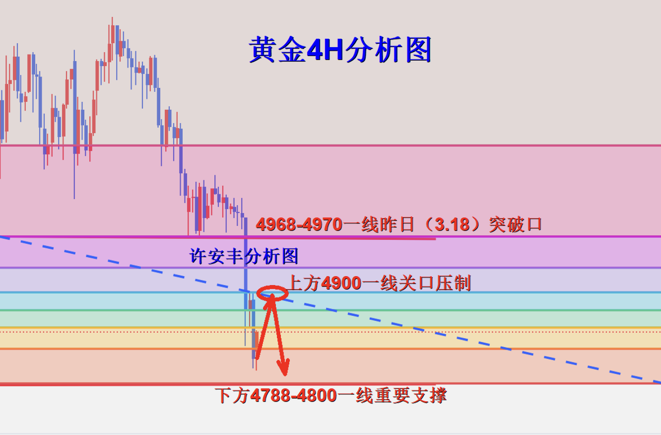 黄金:下方关注4755美元或4650美元附近支撑;上方关注4890美元、4955美元附近阻力;