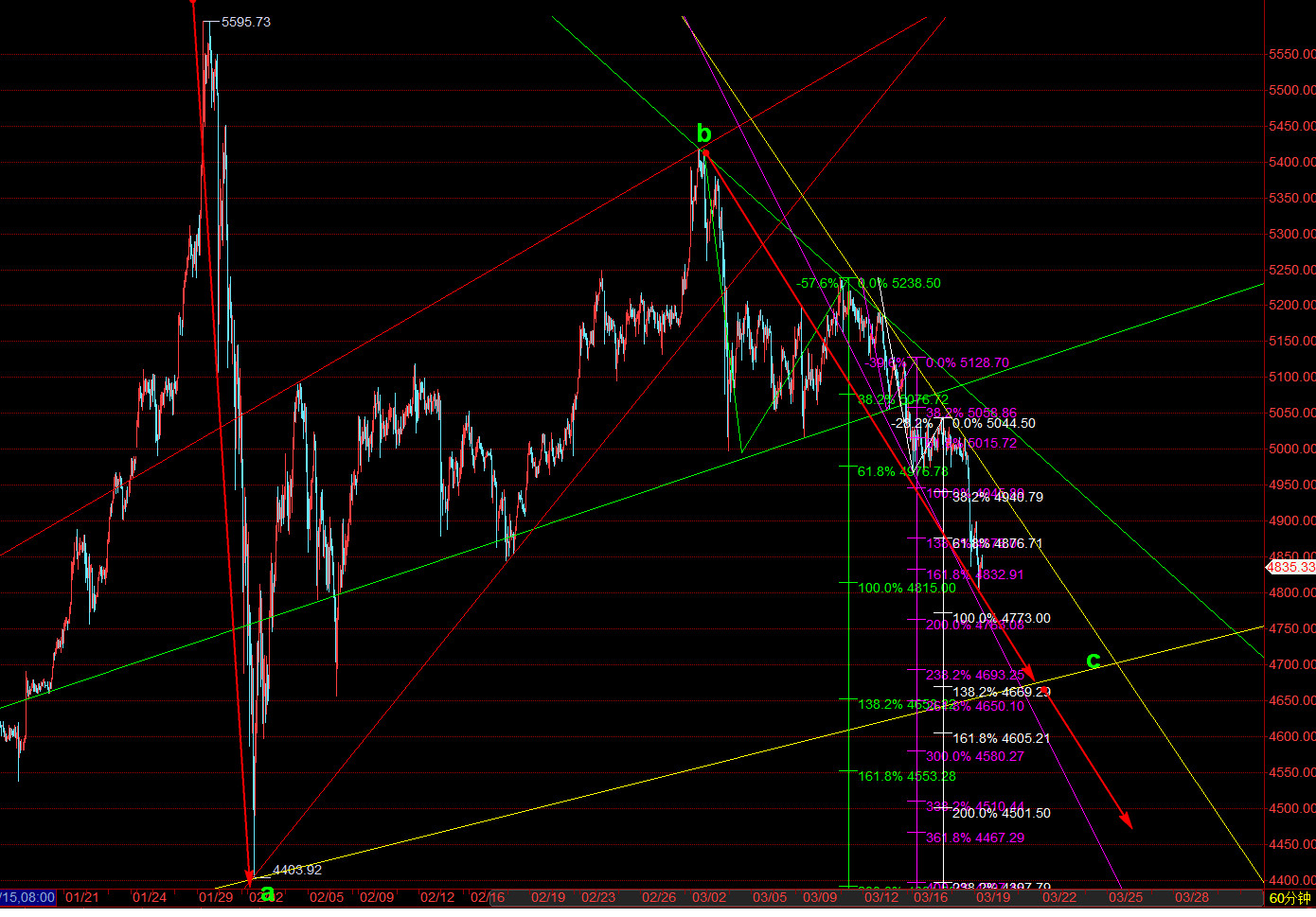 上一个交易日黄金开盘5006.96美元,最高5016.20美元,最低4806.60美元,收盘4813.53美元,报收近似光头光脚大阴线,黄金连续跌破5000美元和4900美元两道大关一度下探到4800美元关口。本周行情比较纷扰,总体而言,我们基本都是5020及其上方都看回落为主,最终昨日如期跌破4967之后大跌,目前的问题是跌到4800关口之后行情是继续向下还是止跌回升?