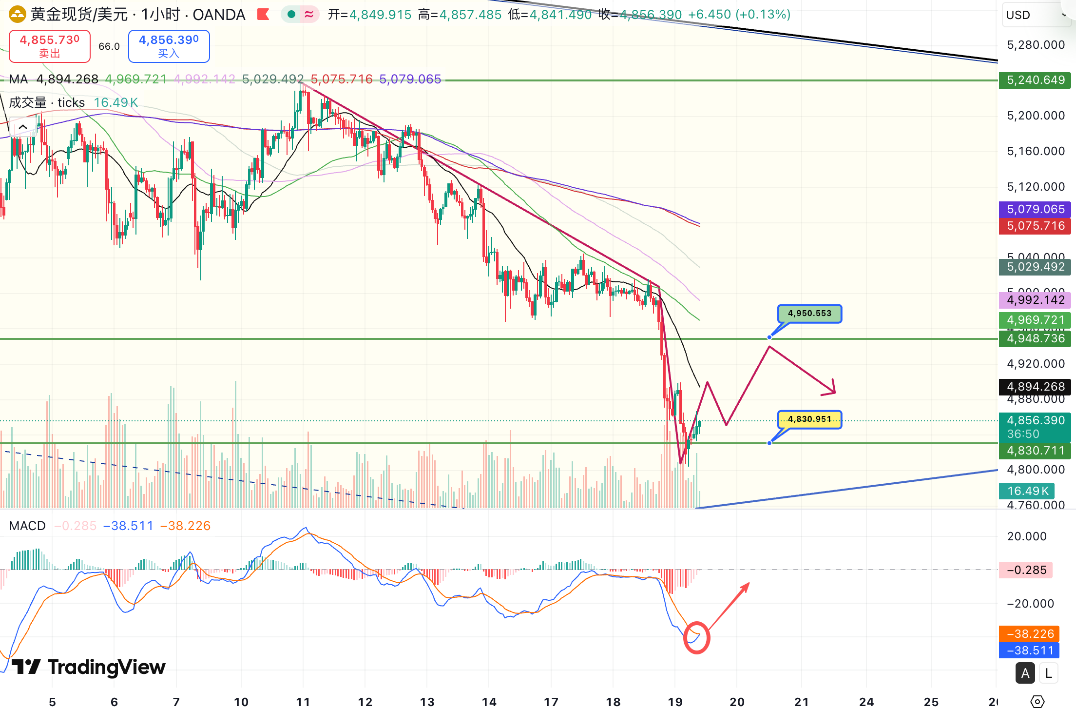 黄金在4820/24附近直接空,防守4836,目标看4790/4780一线,回踩初见4776附近多,防守4762,目标看4810/30一线。