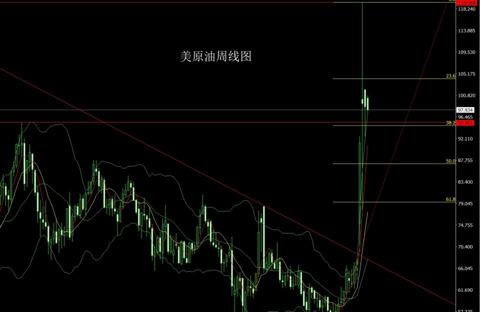 美原油:本周96多止损95.5,目标看97和98和99和100压力。