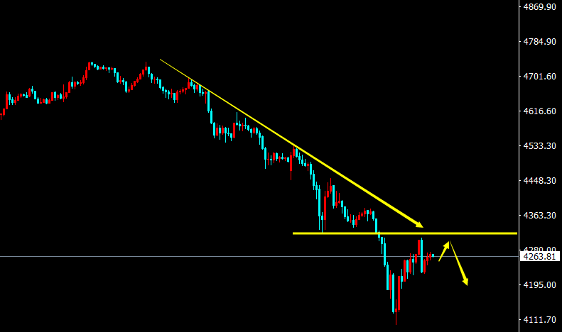 日图,金价昨日触底200日均线支撑后,4100美元多单挂单如期成交,并据此大幅反弹回升,收取垂线形态,暗示后市偏向止跌看涨的倾向,根据走势指标指示来看,未来1个月左右,有重回5000美元乃至5400美元目标的预期。