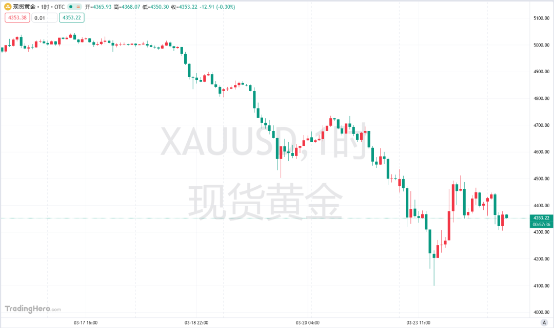 黄金下跌是美国懂王一度威胁,若伊朗未在48小时内重新开放霍尔木兹海峡,美国将打击伊朗电力基础设施,这一威胁迅速引发市场对中东局势升级的担忧,也令美元避险买盘升温,黄金则在隔夜重挫近9%,最低跌至4100关口!