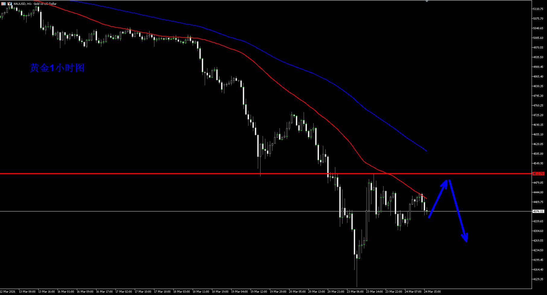 黄金午后反弹承压,黄金直接空,文章也直接公开提示4425直接空,黄金如期下跌,黄金短线还是继续在4500下弱势震荡,白天波动不大,美盘行情可能相对活跃一点,不过如果还是继续承压4500压制,那么黄金美盘还是继续空。