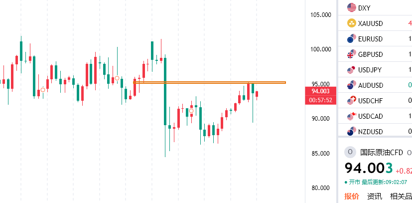 原油94.6附近继续空,防守96,目标看90/88一线,回踩86.5附近多,防守85,目标看90上方