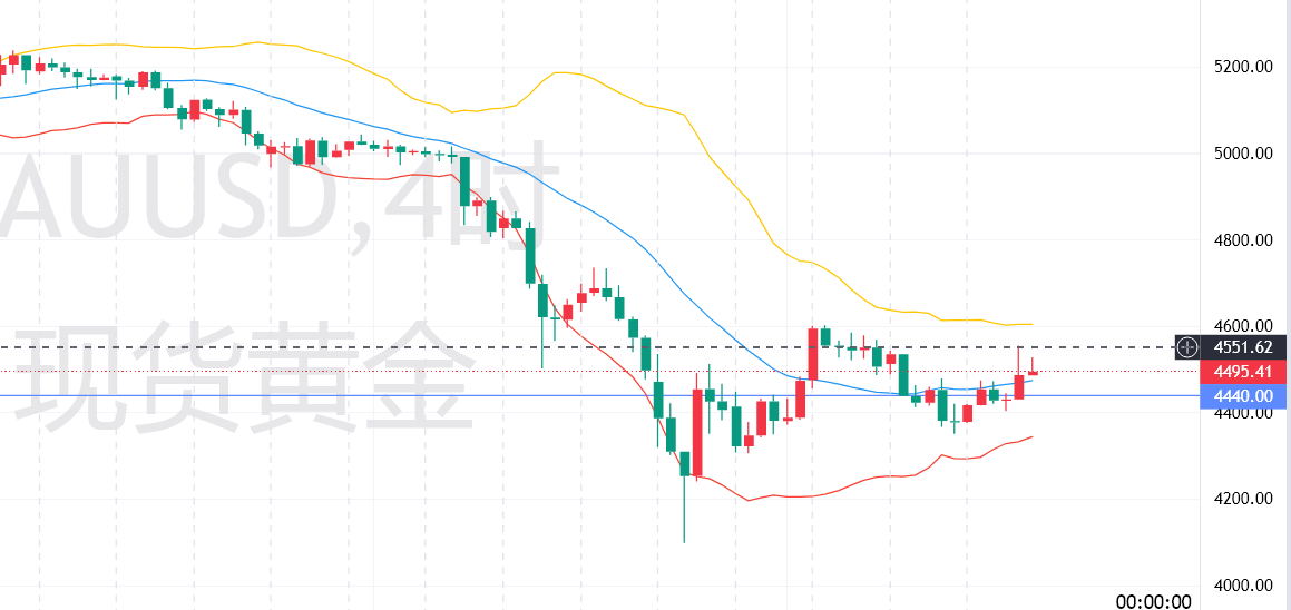 小时级别:本周小时线多次出现快速涨跌切换,单日波动幅度超100美元,体现出短期资金博弈的激烈程度;本周最后两个交易日,小时线震荡区间逐步收窄,波动幅度降至50美元以内,显示短期市场情绪趋于平稳,多空双方暂时观望。技术指标来看,小时线MACD指标反复出现金叉、死叉切换,动能柱持续处于低位震荡,表明短期趋势性较弱,以震荡整理为主;RSI指标在30-70区间内反复波动,未出现明显超买超卖信号,契合小时线震荡格局。支撑与阻力方面,小时线短期支撑位为4473(本周收盘附近,同时也是近期震荡平台下沿),上方阻力位为4538附近。整体来看,小时线级别暂无明确单边趋势,短期仍以区间震荡为主,需重点关注突发消息面带来的波动。