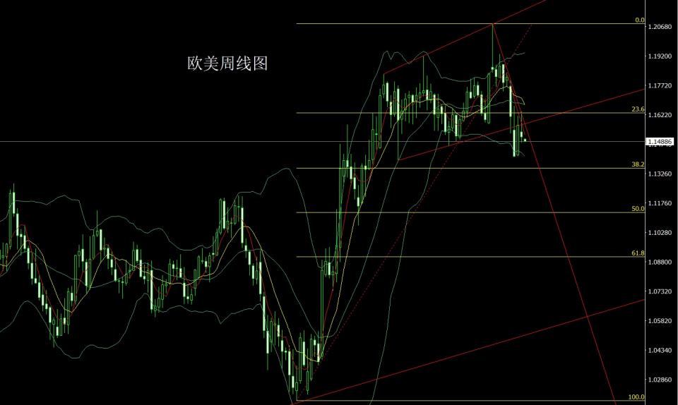欧美市场上周开盘在1.15350的位置后行情先回落,周线最低给到了1.14831的位置后行情强势拉升,周线最高触及到了1.16404的位置后行情冲高回落,周线最终收线在了1.15115的位置后,周线以一根上影线极长的倒锤头形态收线,而这样的形态收尾后,本周1.15250空止损1.15450,目标看1.14900和1.14700和1.14500-1.14400离场。