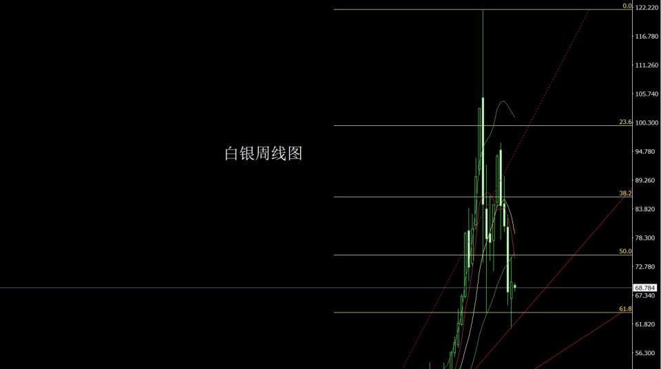 白银市场上周开低开在66.692的位置后行情先回落,周线最低给到了60.78的位置后行情强势拉升,周线最高触及到了74.624的位置后行情承压回落,周线最终收线在了69.796的位置后周线以一根上下影线很长的中阳线收线, 而这样的形态收尾后,今日的行情67多止损66.75.目标看67.5和68和69和70.