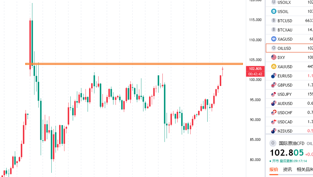 原油103上方空,防守104.8,目标看98附近