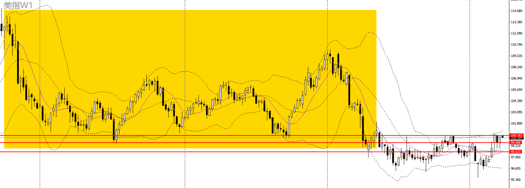 美元指数上周重启升势,反复上探周线关键压力带100.30-100.50,波段有望进一步实现上破。周五再收长阳柱,4小时于100.30附近承压,如无法升破,短线预计将延续震荡格局,如上破,可看多至101。