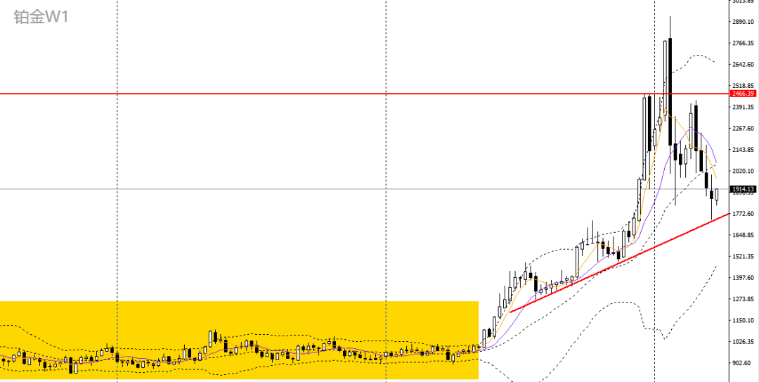 铂金上周延续阴跌,5周、10周均线呈空头排列,波段不排除将延续回落。周五收小阳线,周一亚盘强势拉升,日线RSI回升,4小时触及1900-1920压力带,多单可继续持有,如彻底升破,可看多至1940。