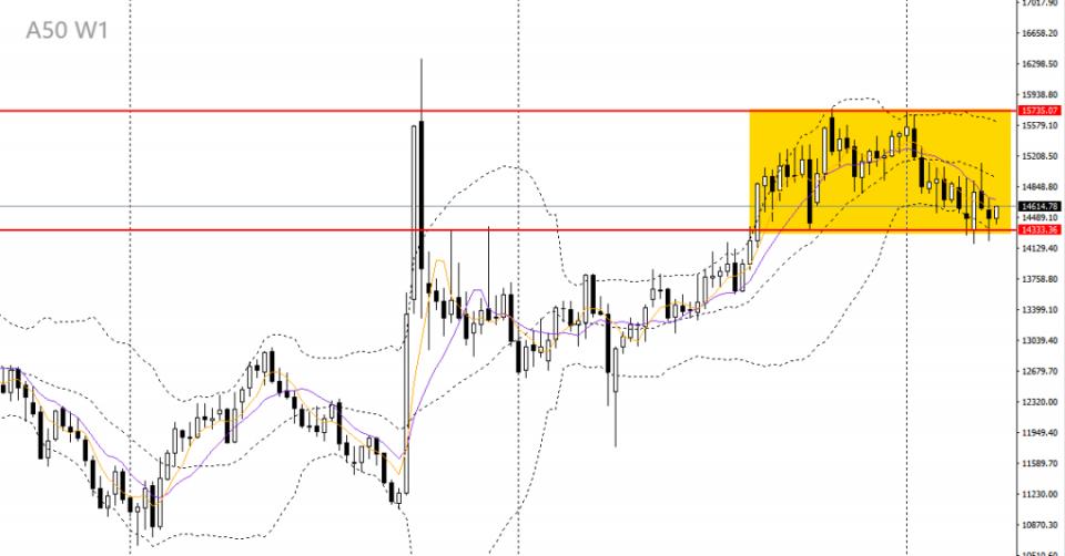 A50上周收十字阴线,再度回踩前低,波段仍处于震荡格局。周五收十字星,今日亚盘拐头上行,4小时仍处于此前震荡区间,稳健者建议继续观望。