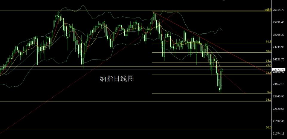 纳指市场昨日开盘在22942.88的位置后行情先回落,日线最低给到了22775的位置后行情强势拉升,日线最高触及到了23792.92的位置后整理,日线最终收线在了23714.35的位置后日线以一根下影线稍长于上影线的大阳线收线,而这样的形态收尾后,今日的行情23400多止损23340,目标看2600和2700和23800和23900和24000.