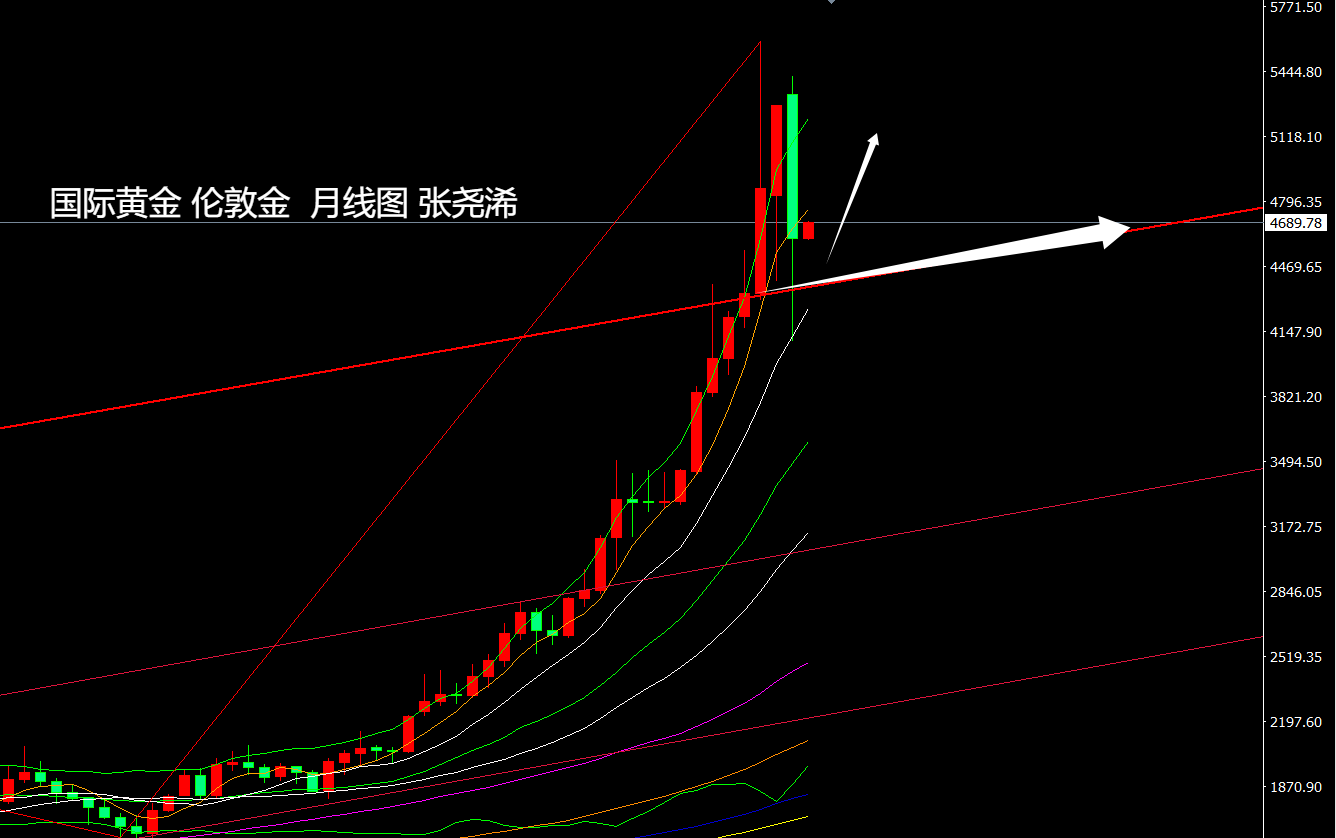 技术上,月线级别,金价3月收线在上升趋势线之上,维持着牛市前景,后市只要不跌破此支撑线下方收线,就仍将有新高的前景预期。