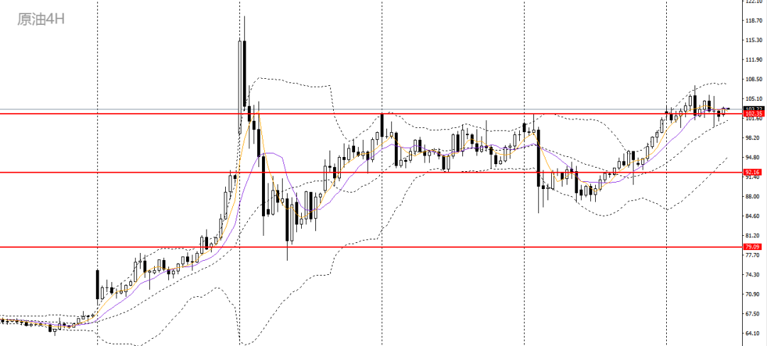 美原油周二收长阴柱,仍立于5日均线之上,4小时未能有效升破107关口阻力,多头动能放缓,但整体趋势仍偏强,100-102一带企稳可继续进多。