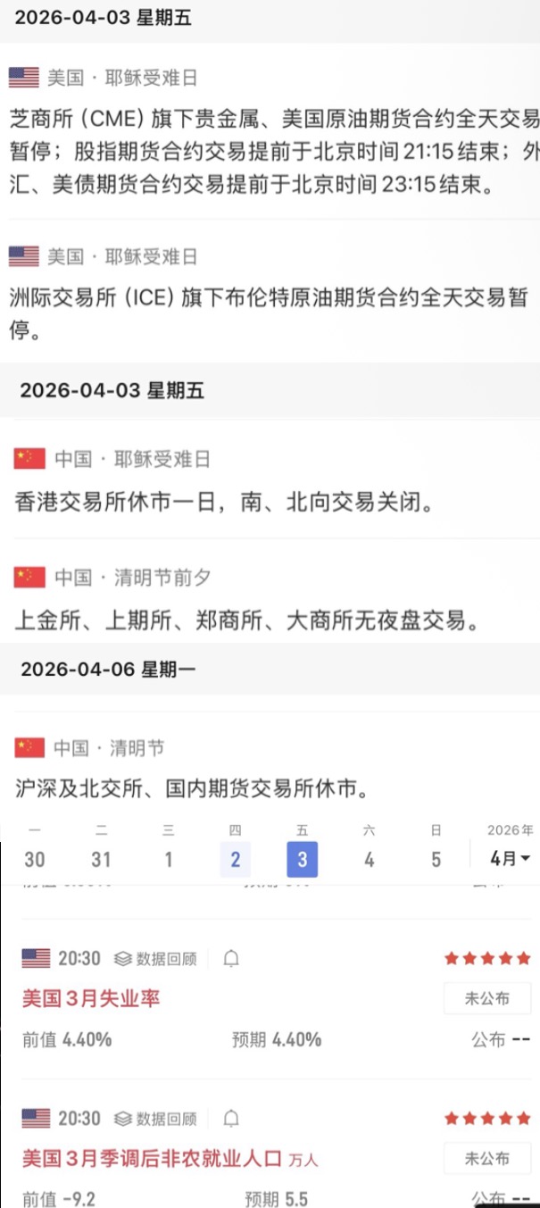重要提醒,周五国际市场全部休市,国内期货市场没有晚盘!并且周五晚上还有非农就业数据公布!千万注意规避风险!!!