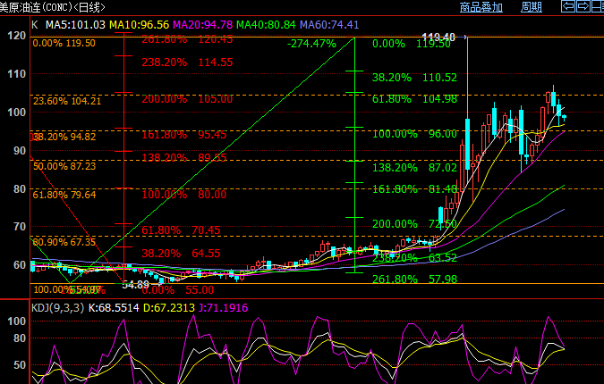美原油连,继续折腾,当前朗子局势决定的。短线围绕100美元拉锯,中期方向不明;个人偏向冲高回落,局势降温原油会跌回70美元下方;继续升级,那么还要反复冲高,甚至破一次3月脉冲上涨高点120美元。