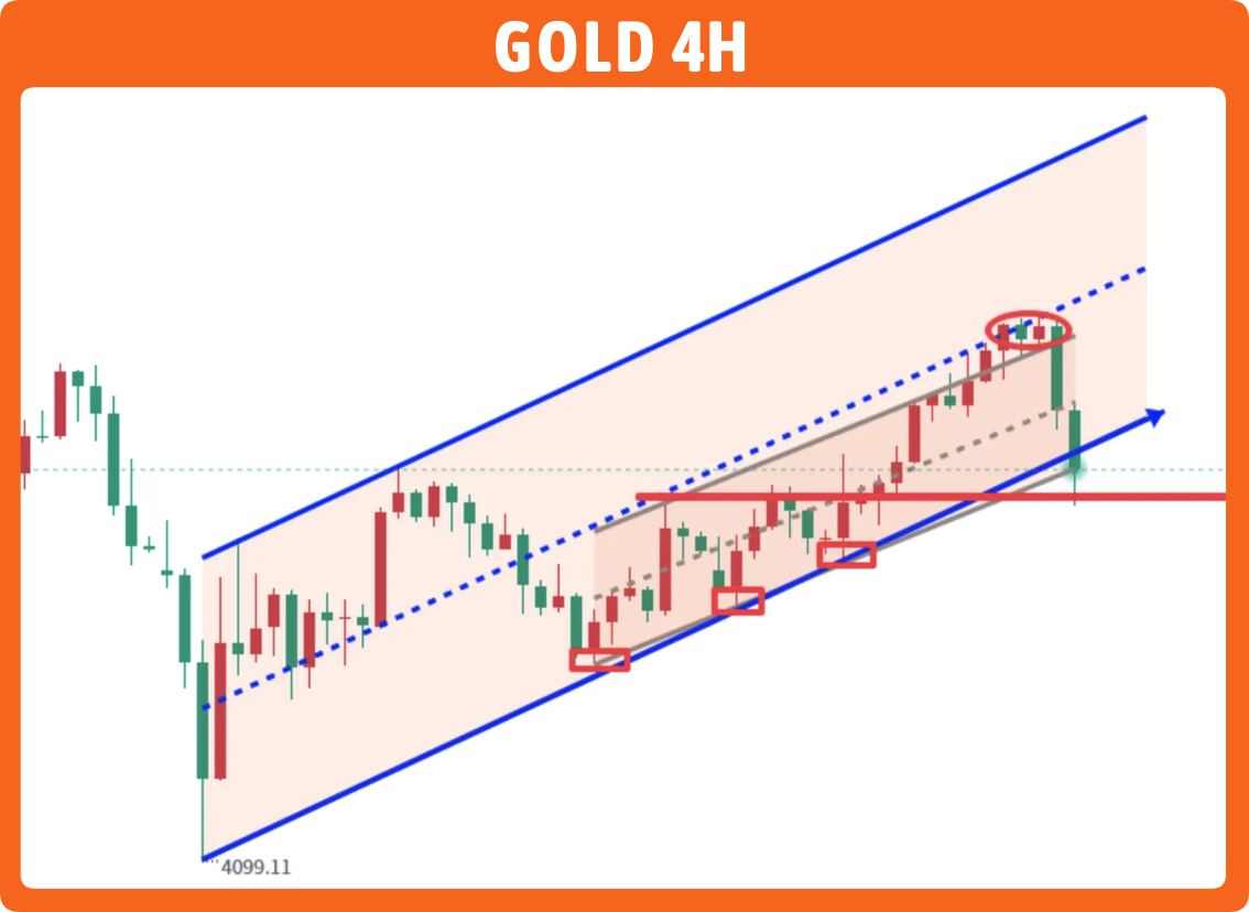 但是事与愿违,它并没有足够的买盘力量让他在高位保持震荡,现在如果要做交易,肯定都是找机会抢反弹,不可能去追跌,毕竟底部的支撑太多了,而且别忘了,本轮行情是在4800处下跌的,在这之前,黄金是已经完成了内部小等距通道顶沿破位,按理说能把价格推到第二阶段的等距通道才对,欺骗性太强了,既然选择了回头下跌,那就别去固执周内新高了,所有的交易都以区间交易为主,不要小瞧任何一个假破位后的反转行情力度。