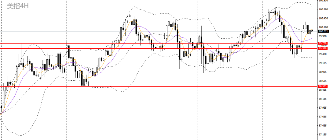 美元指数收长阳柱,日线RSI位于50之上,4小时回踩100关口附近企稳,短线预计将维持高位震荡格局。