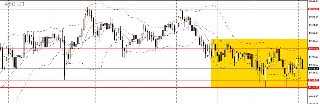 A50再收十字星,今日亚盘大幅回落,5日、10日均线走平,4小时仍处于此前震荡区间,可保持观望。
