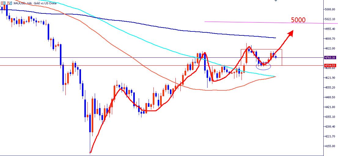 四小时线也是呈现高点在下移,从4870附近下行到4800附近,这是明显的弱势,哪怕昨天冲高,也是明显的回落,力度不够,能量不够,今天要暴跌,下方支撑在4660一线,也就是今天的目标位