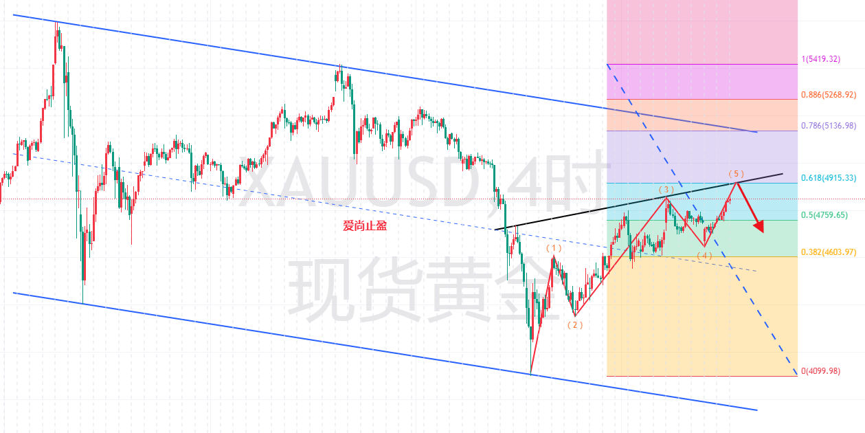 昨日金价延续周一尾盘的强势走势,早间直接从周一收盘高点4745附近开始拉涨,第一波涨到4777-4800附近时受阻回落,欧盘二次反弹突破4780后,直接开启加速上涨模式。