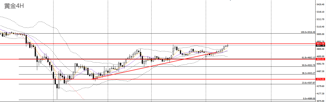 黄金周二延续反弹,4小时刺破4860附近阻力,有望实现进一步升破,4800上方可继续择机做多,上方首先关注4900关口压力。黄金/人民币如于1053附近企稳可进多。