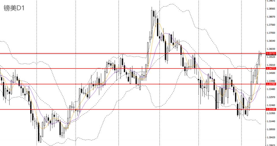 镑美昨日再收长阳柱,日线RSI位于高位,4小时触及关键平台压力1.3570,多单可继续持有,如正式站上1.3570,可继续看多至1.36。