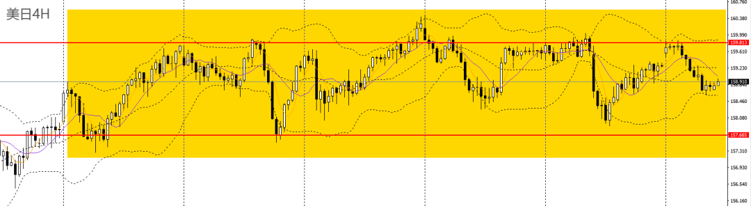 美日昨日延续阴跌,仍徘徊于5日、10日均线附近,日线RSI跌至50附近,4小时仍于158-160区间内震荡,稳健者可暂时观望。